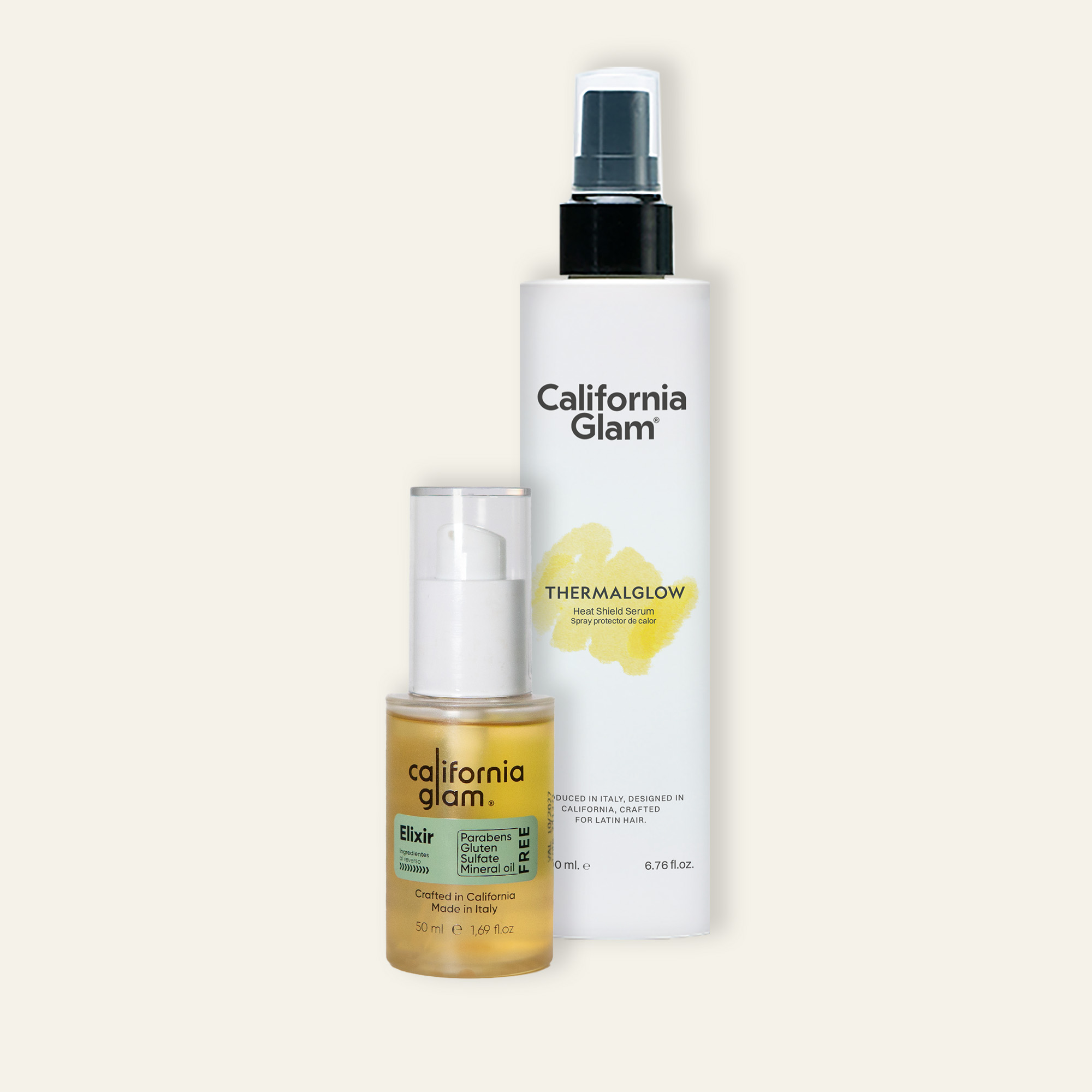 Empieza con Thermalglow de California Glam, tu protección térmica esencial para un planchado sin daño, con brillo y suavidad desde el primer paso.